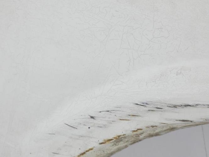 Frottée au dessus de la roue, legerement enfoncée, peinture craquelée