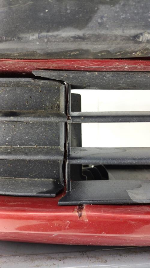 - Plusieurs rayures, verni écaillé à différents endroits du pare choc, grille cassée