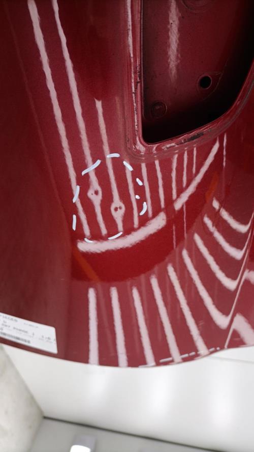 - Quelques rayures légères, petit frottement au bord de la porte côté droit, deux petits impacts vers l'emplacement du rétroviseur