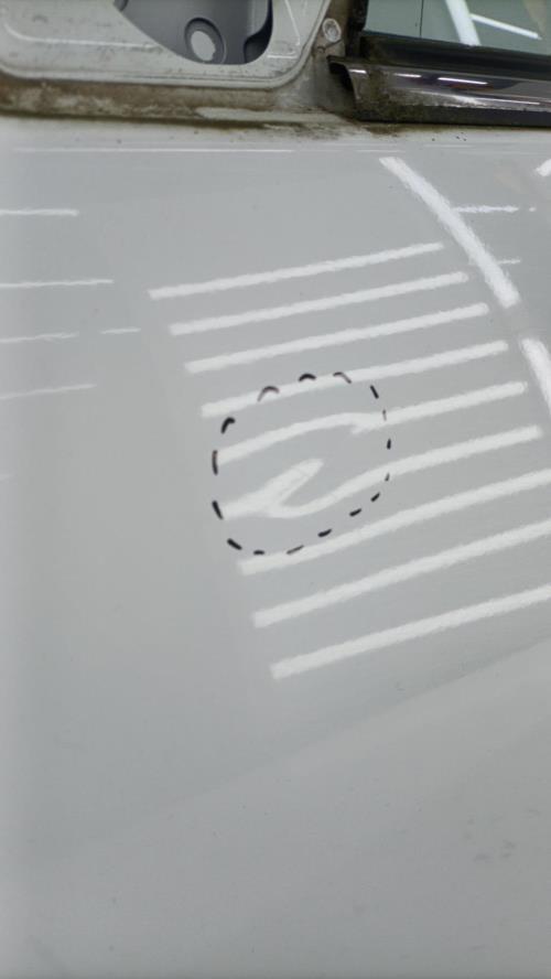 - Quelques rayures, un impact à gauche, une rayure importante à droite