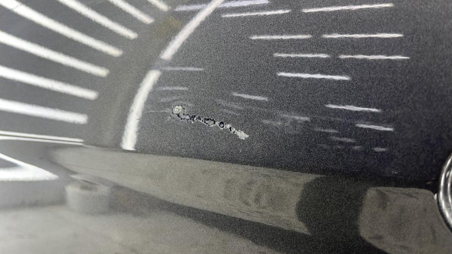 - Quelques rayures présentes, un impact au centre de la porte à côté de la poignée extérieure