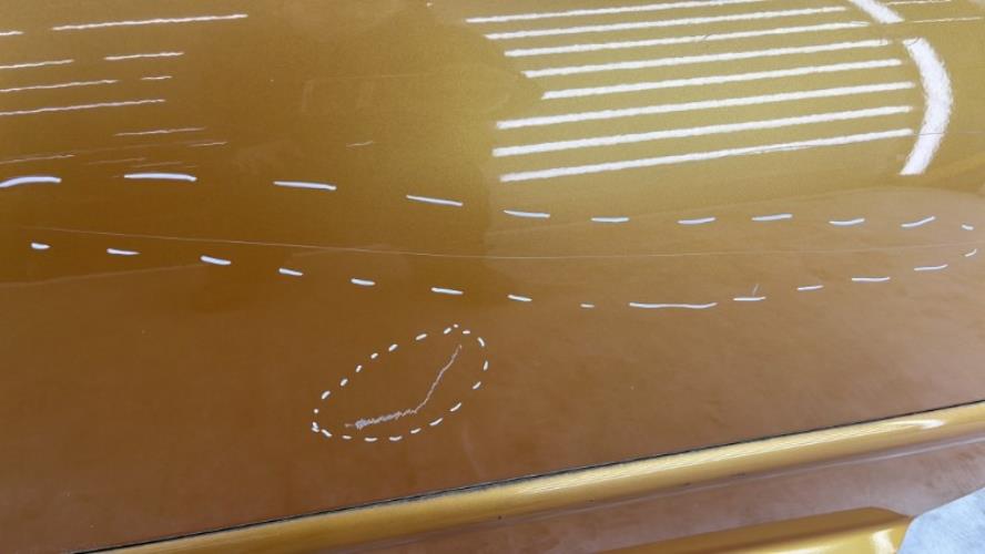 - Quelques rayures présentes dont certaines bien visibles au centre, petit impact vers la poignée extérieure, quelques petits frottements
