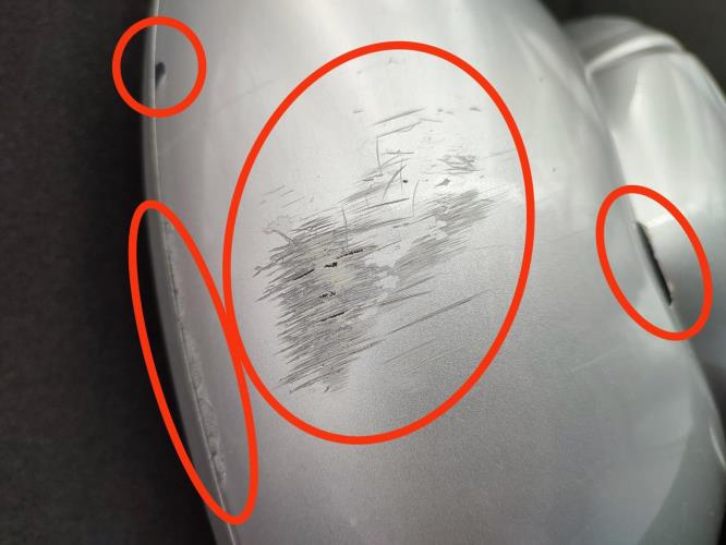 ⚠️coque frottée et rayée à plusieurs endroits ( voir photos avec repères rouge )