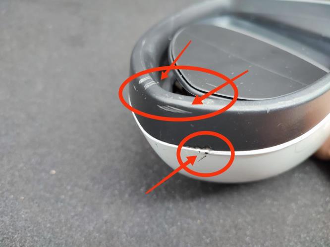 ⚠️ coque fissurée et rayé + support frotté autour de la vitre à l'avant ( bien regarder les photos avec les repères rouge ) ⚠️