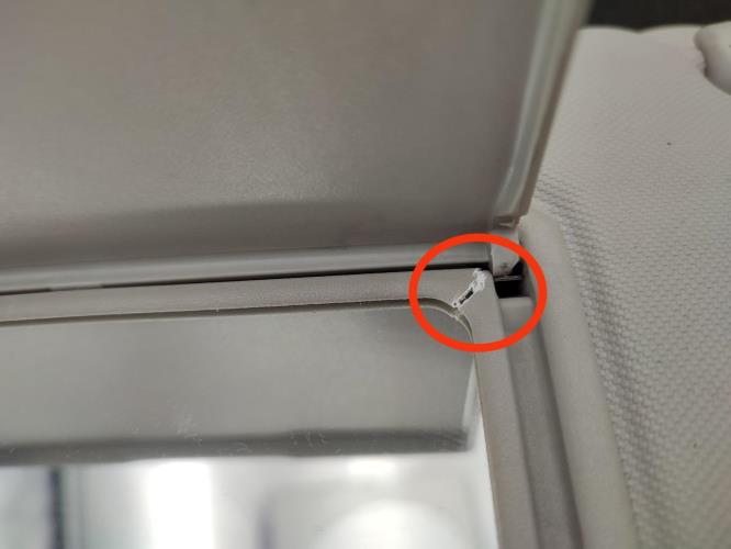 ⚠️ plastique fendu sur les bords de la glace ( voir photos avec repères rouge )